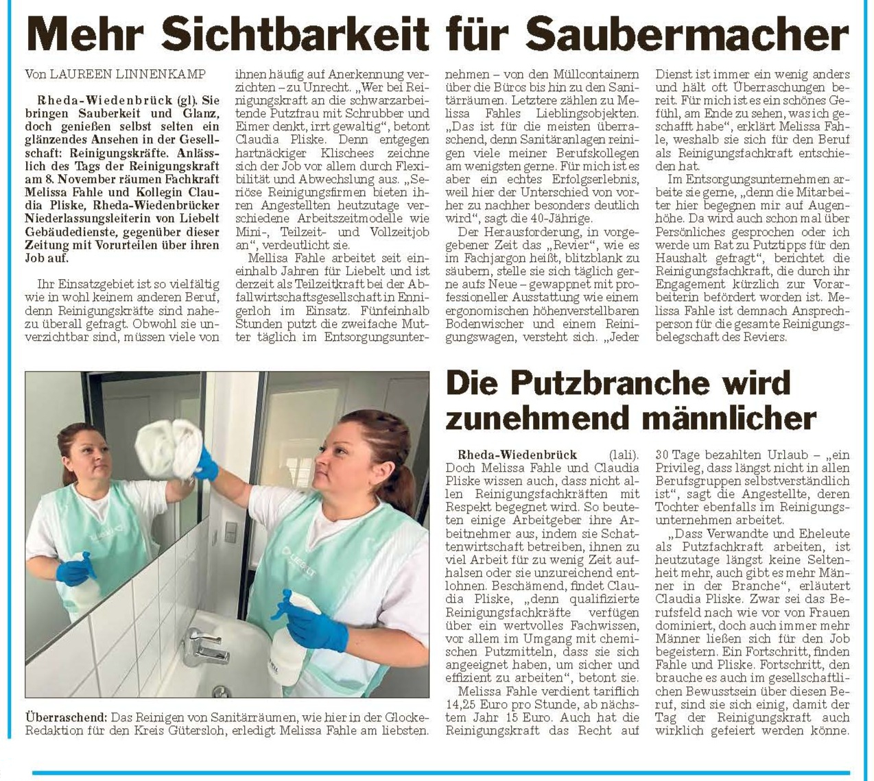 die Rede ist von unseren Reinigungskräften!Anlässlich des "Tages der Reinigungskraft" erschien in der Tageszeitung "Die Glocke" dieser tolle Artikel: